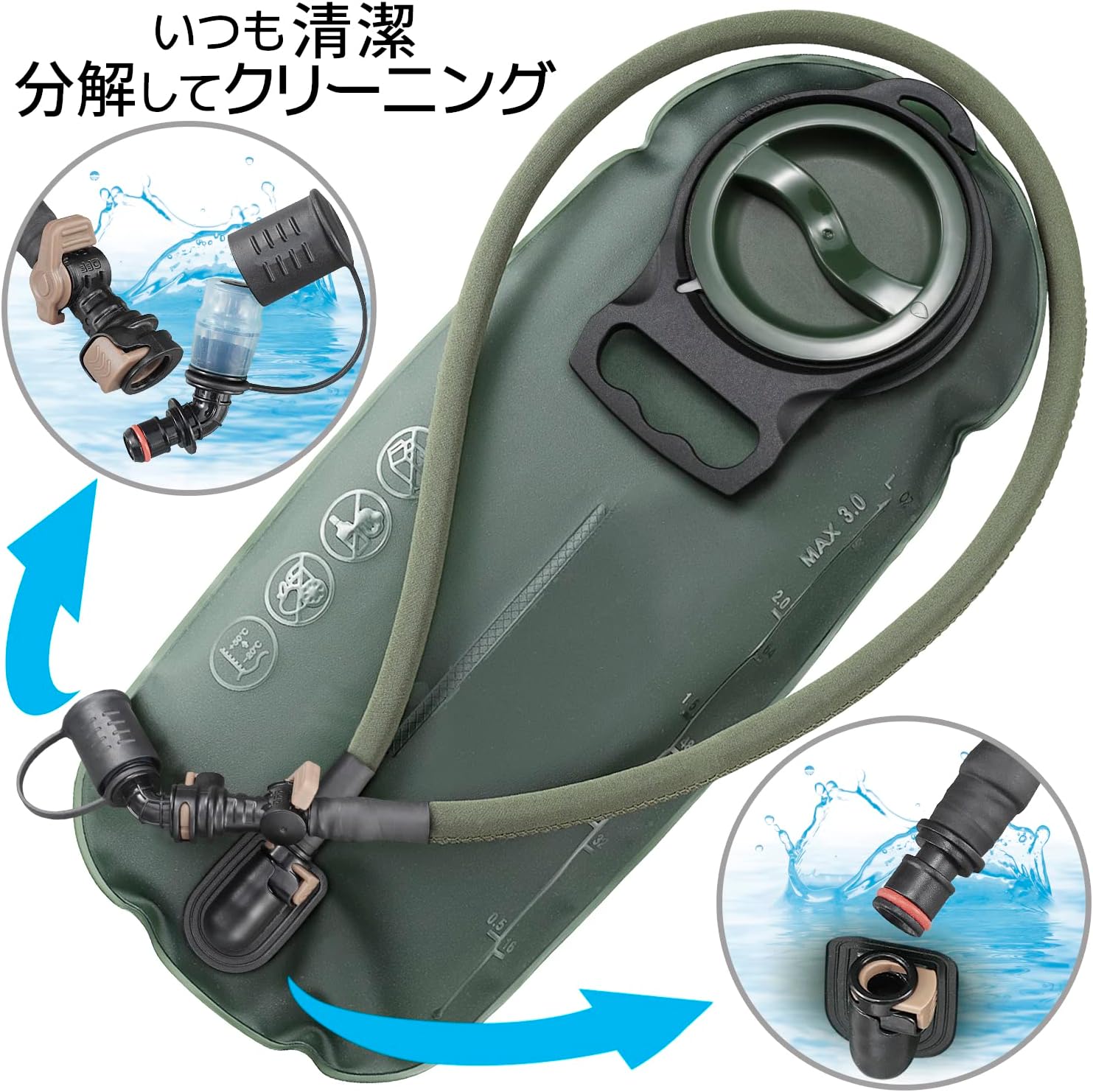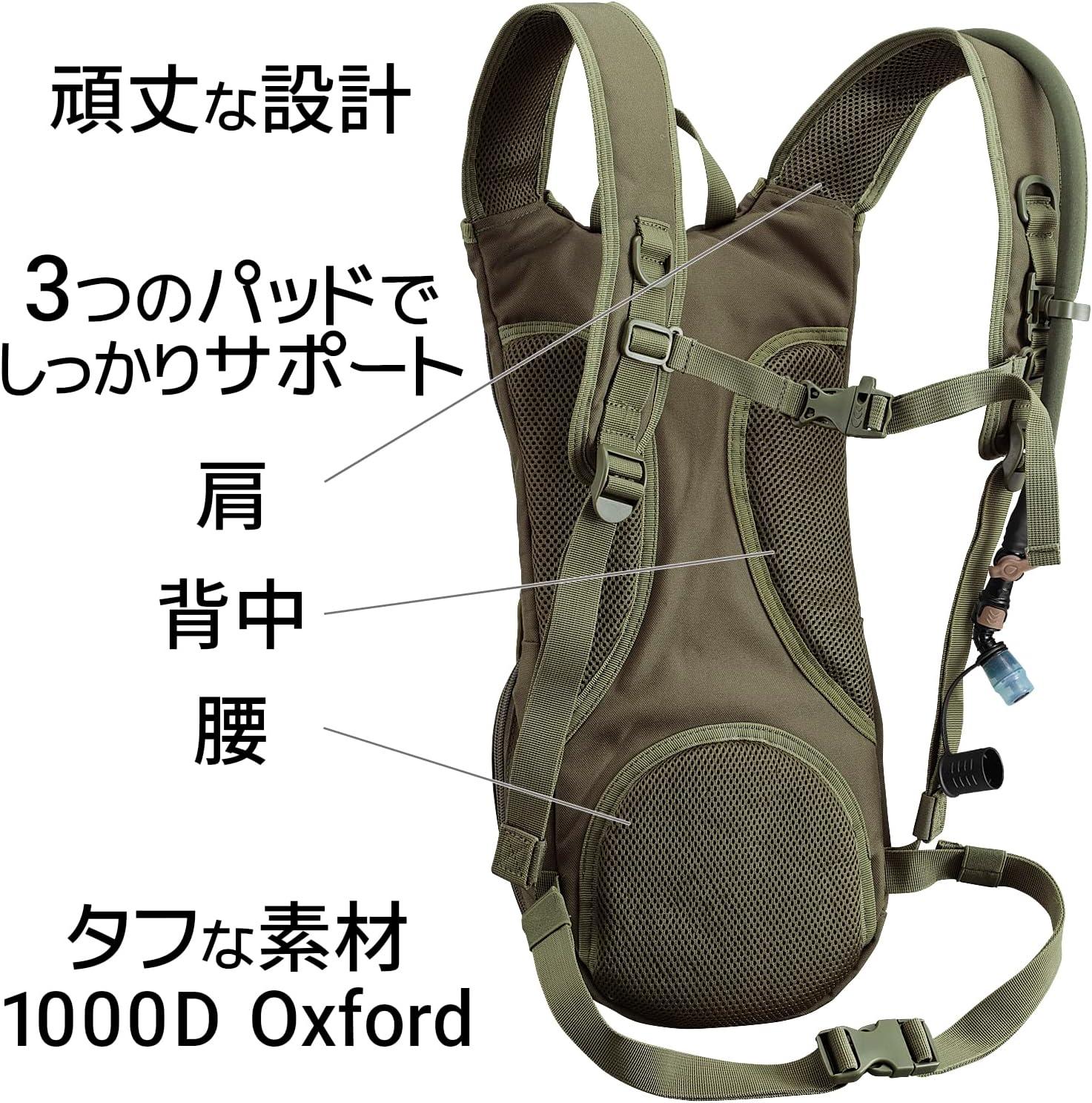 カムイハイドレーションバッグ [Large Capacity 3L] 軍事バックパックの給水機能 – トレイルランニング、ハイキング、サイクリング、キャンプ、スキー、スノーボード、サバイバルゲームなどに最適